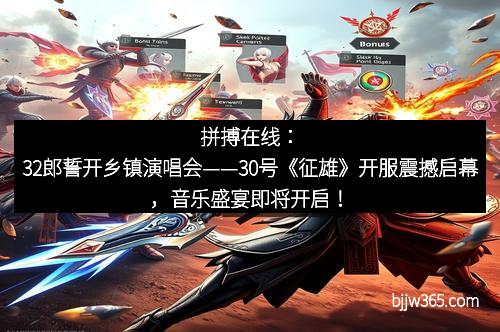 11月30日,让我们共同期待这场由32郎誓主导的乡镇演唱会。它将带来一场视听冲击,一次心灵洗礼,也将开启一段全新的娱乐与文化旅程。音乐的力量无远弗届,它连接的是每一颗炽热的心,激励我们在平凡中追求非凡。别错过这个属于全民狂欢的夜晚,届时上线的《征雄》也将为你带来全新的游戏体验,让热情翻滚,青春不灭。